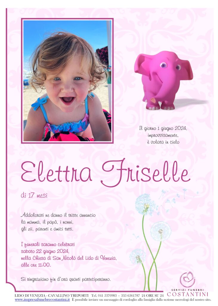 VENEZIA LIDO - Un silenzio palpabile ha avvolto la chiesa di San Nicolò al Lido questo sabato, mentre la comunità si riuniva per dare l'ultimo saluto a Elettra Friselle, la bambina di soli 17 mesi la cui vita è stata tragicamente spezzata da un incidente domestico. La cerimonia, iniziata alle 11, ha visto la partecipazione di centinaia di persone, molte delle quali hanno atteso all'esterno del luogo sacro, tenendo in mano palloncini colorati come tributo alla piccola.