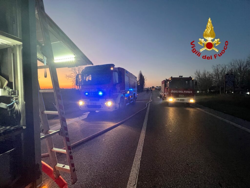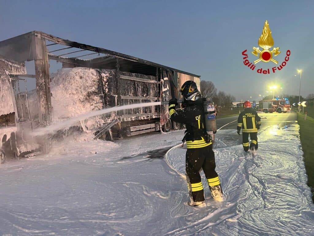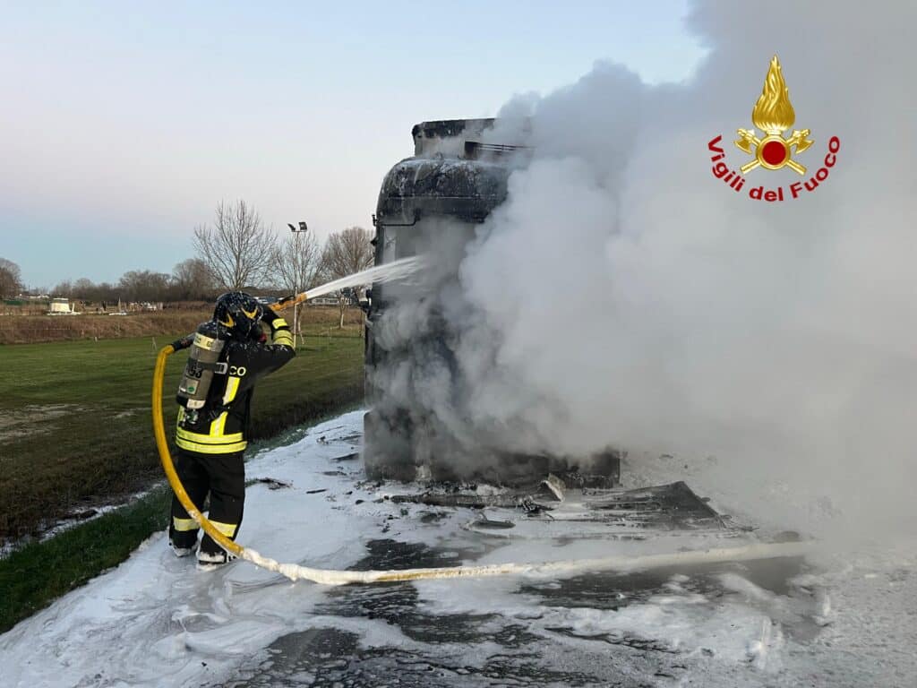 CODEVIGO (PADOVA). Alle 17:15, di giovedì 6 febbraio, i vigili del fuoco sono intervenuti lungo la strada Romea a Conche di Codevigo per l’incendio di un autoarticolato: nessuna persona è rimasta ferita.