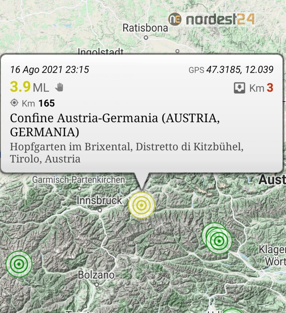 Una scossa di terremoto di magnitudo 3.9 ha colpito alle 23:15 di stasera l’Austria occidentale, con epicentro a Worgl, non lontano da Innsbruck, con coordinate geografiche (lat, lon) 47.318, 12.039 a...
