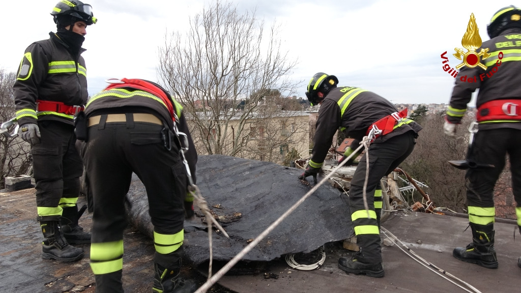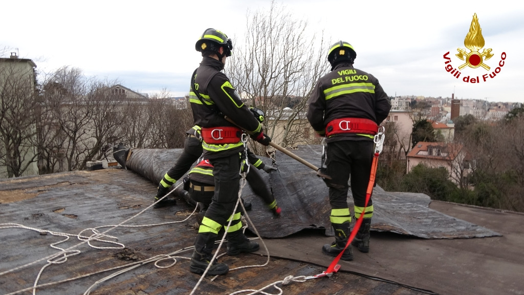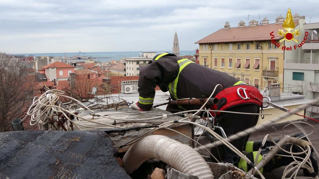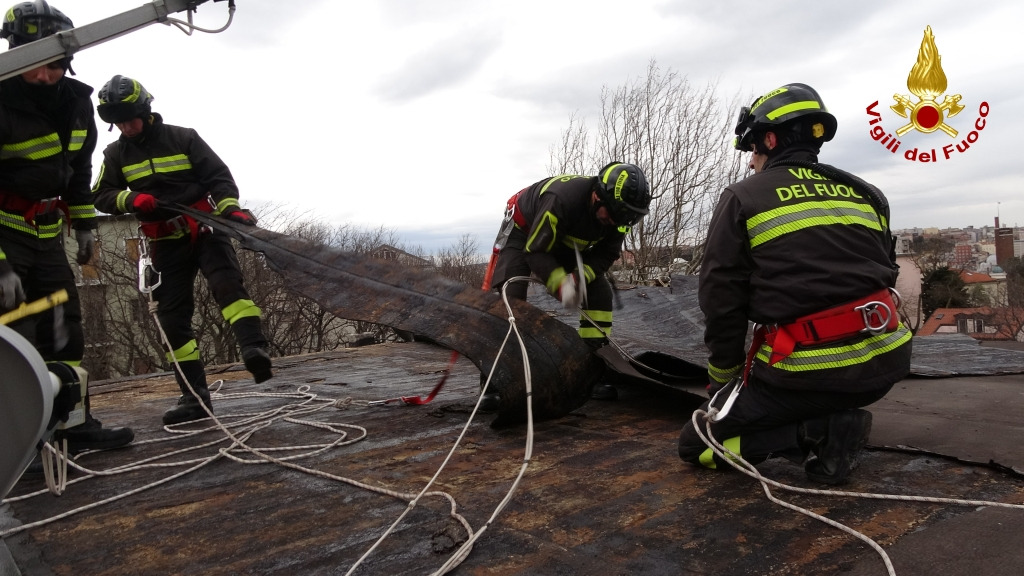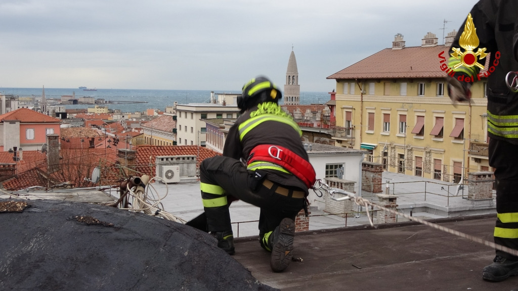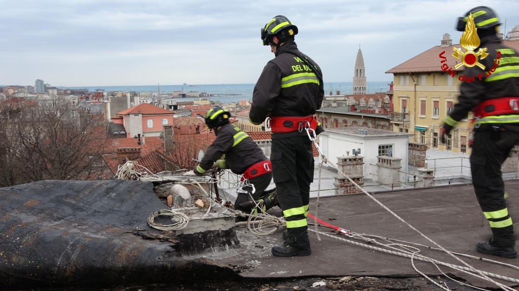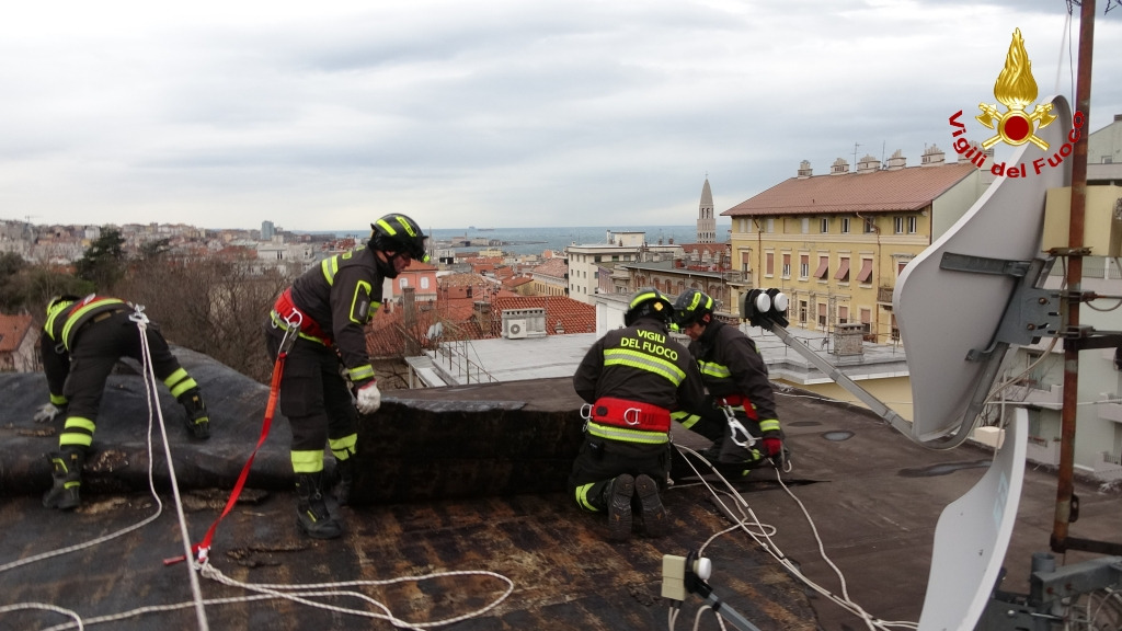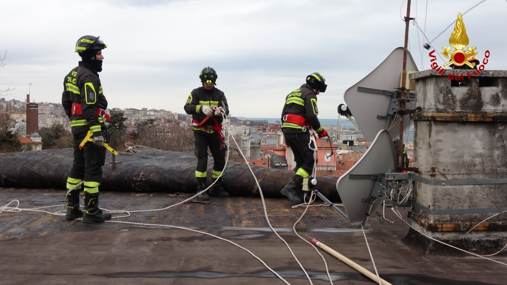 Le immagini si riferiscono ad un intervento per danni ad una copertura di un condominio in Vis di Scorcola a Trieste