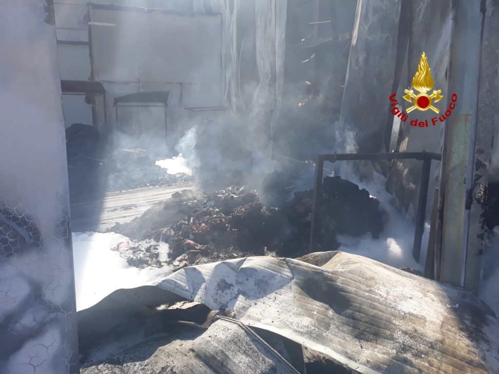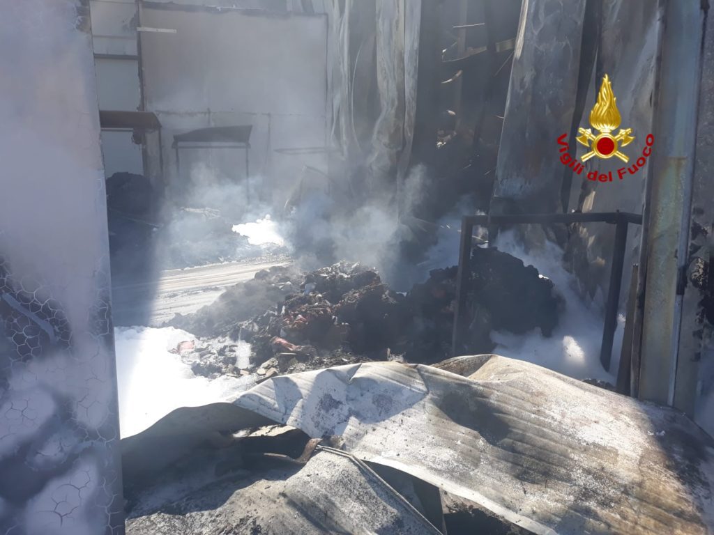 L’incendio ha interessato soltanto la parte del fabbricato adibita a deposito degli scarti di lavorazione.