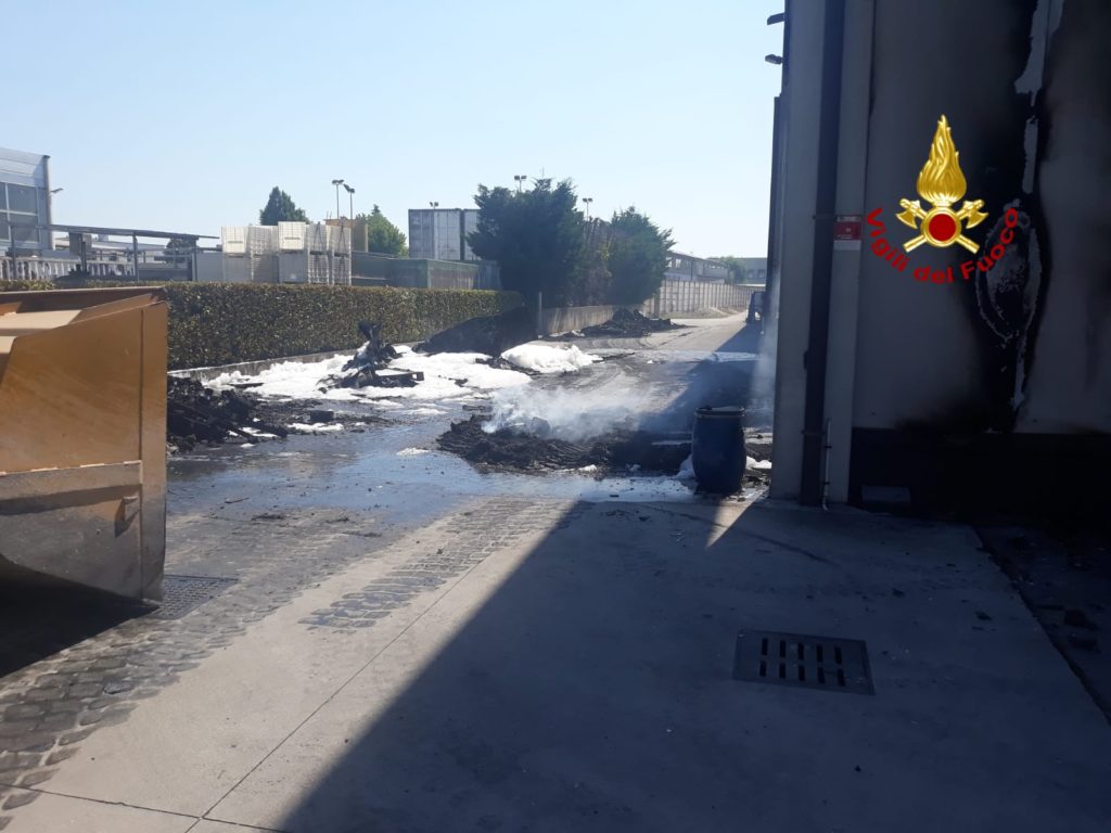 Le fiamme, divampate probabilmente per l’autocombustione di alcuni materiali di scarto della lavorazione di alluminio, hanno prodotto un’alta colonna di fumo visibile da molto lontano.