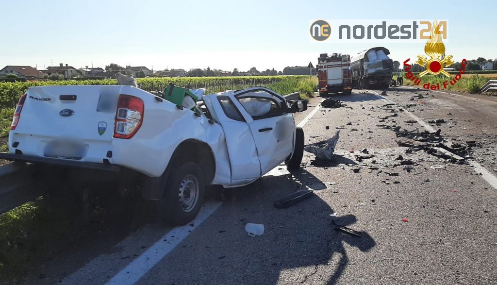 Frontale tra pickup e camion lungo la Treviso-Mare: deceduto il 32enne Valentino Polato
