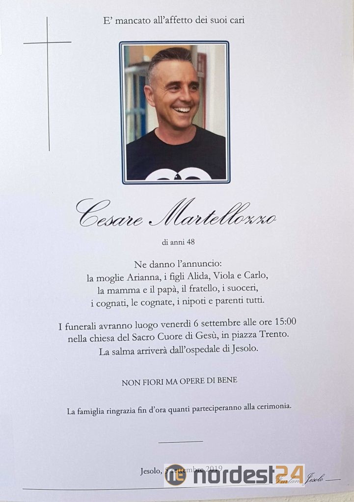 Si svolgeranno oggi venerdi 6 settembre 2019, alle 15, nella chiesa del Sacro Cuore di piazza Trento, i funerali di Cesare Martellozzo, l'imprenditore di 48 anni, morto lo scorso 28 agosto, a poche or...