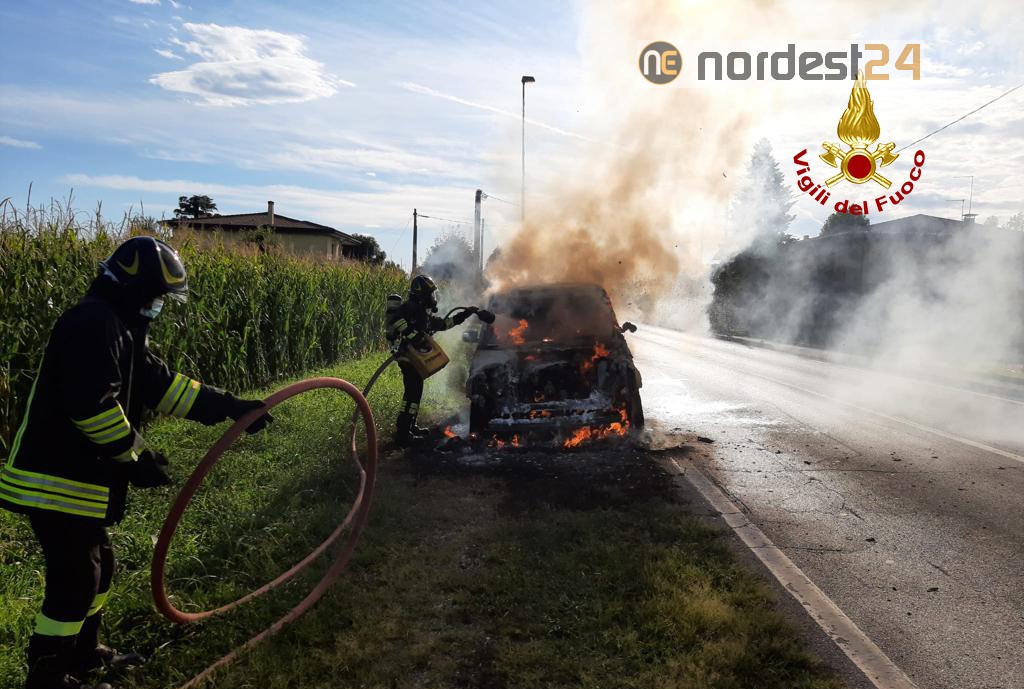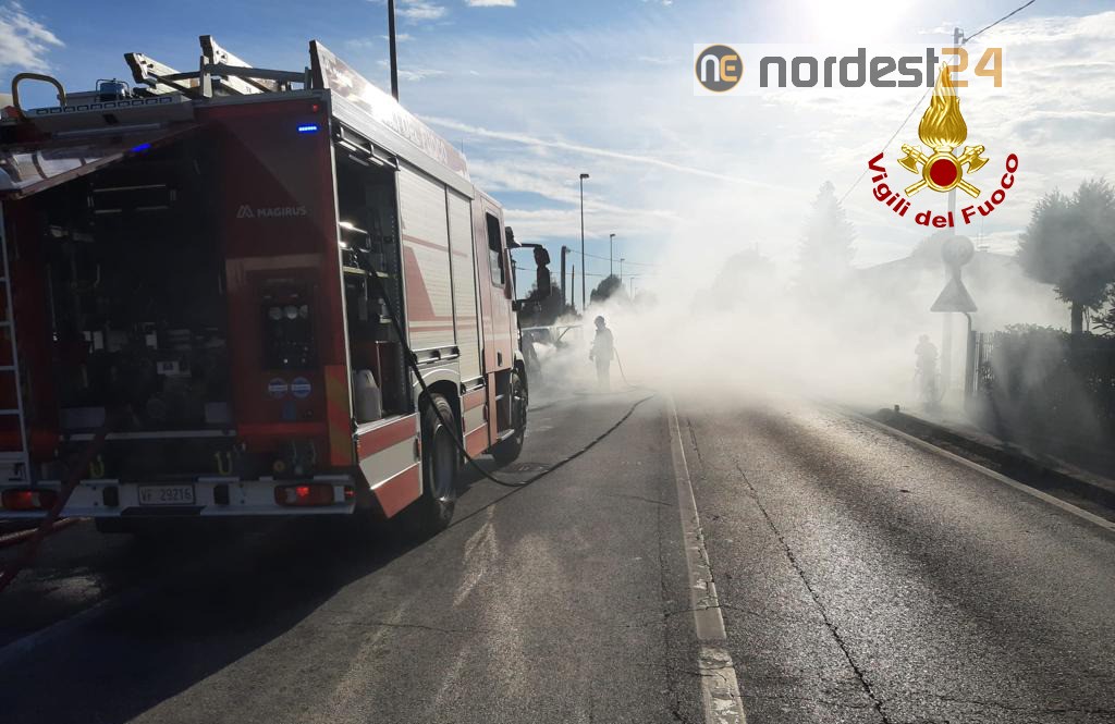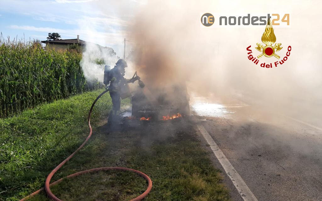 I pompieri arrivati con due automezzi, hanno spento con la schiuma il fuoristrada completamente avvolto dalle fiamme.