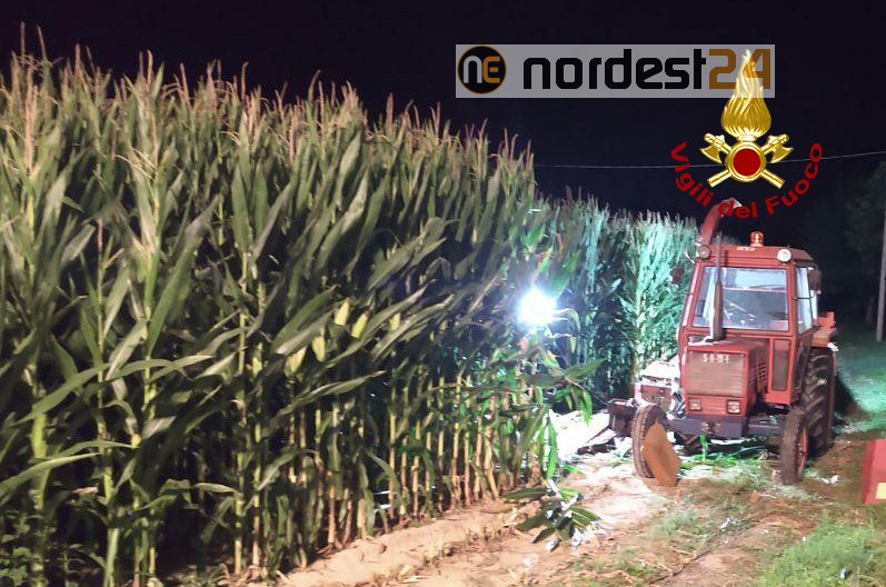 Alle 20:45 di giovedì, i vigili del fuoco sono intervenuti in un campo di mais di via del Pozzetto a Camisano Vicentino per un grave incidente sul lavoro ad un agricoltore rimasto incastrato con una gamba in una fresa.