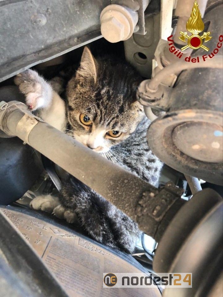 All'arrivo sul posto il personale VVF ha avuto non pochi problemi nel recupero del felino in quanto l'auto era chiusa e la proprietaria non era presente.