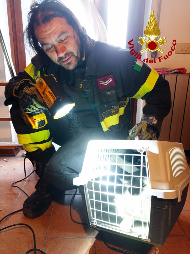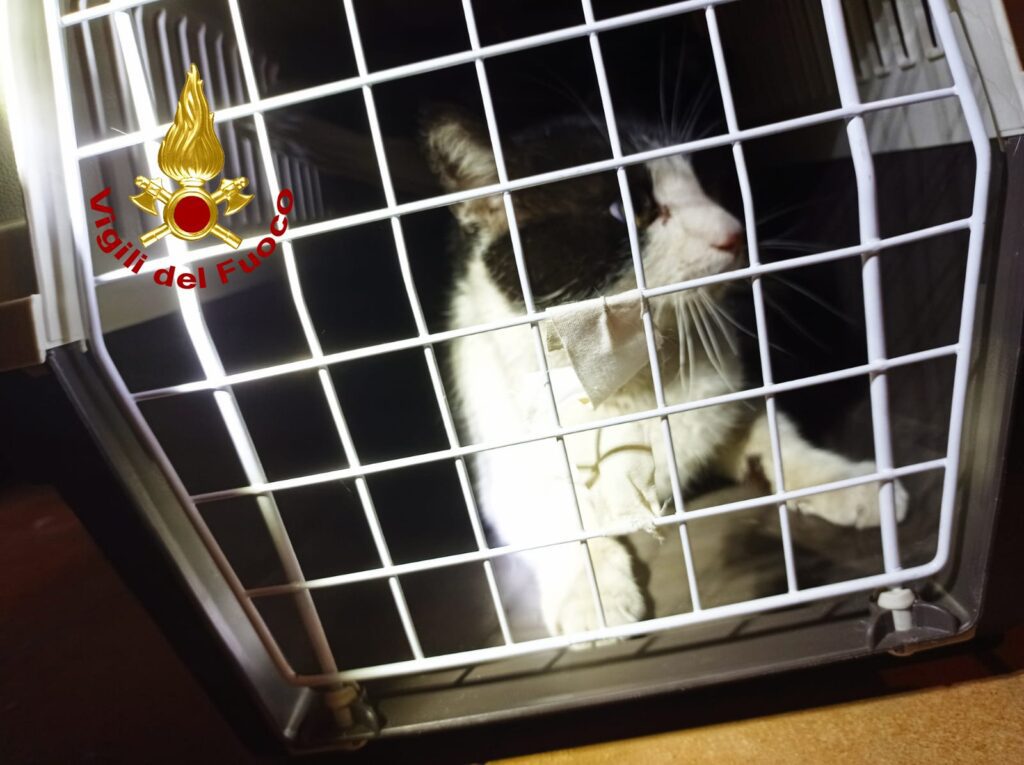 I pompieri individuato l’animale, che continuava a spostarsi sono riusciti a catturarlo e metterlo nel trasportino dove l’animale è stato rifocillato.