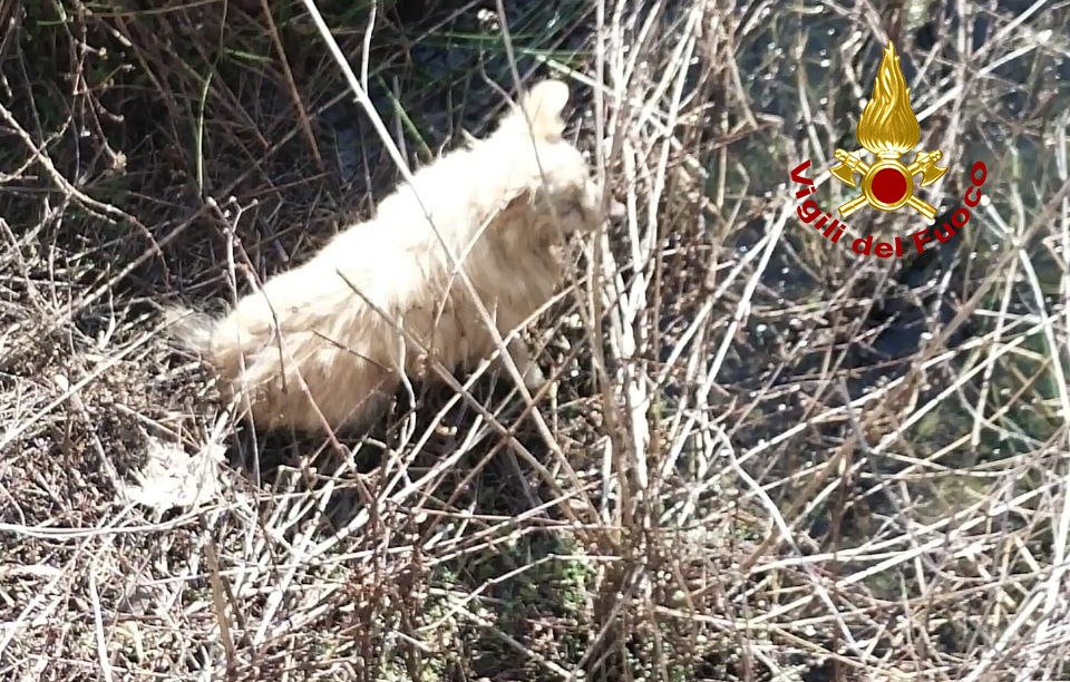 È successo nella tarda mattinata di oggi sabato, quando il meticcio dopo essere caduto in acqua ha raggiunto un isolotto rimanendo ferma.