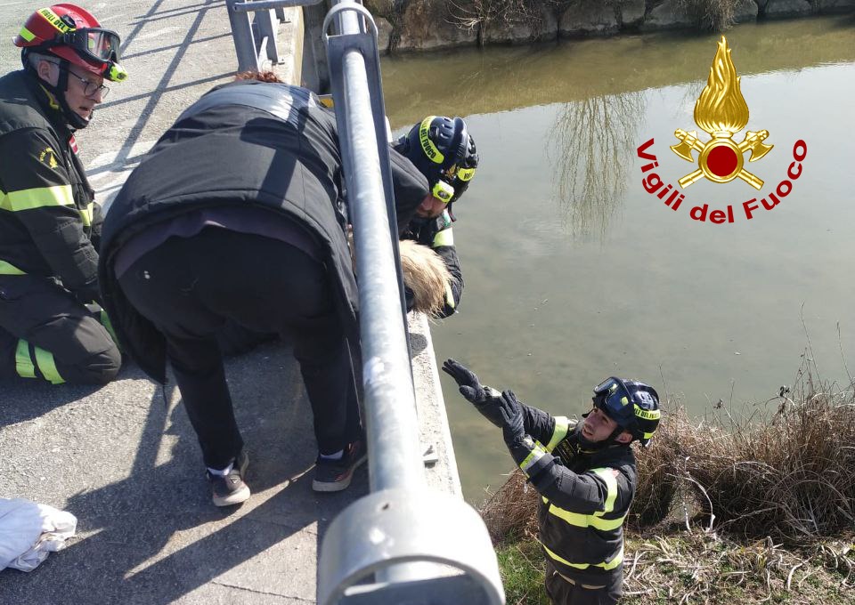 “Giulia” una cagnetta di 15 anni sfugge al controllo della proprietaria mentre era a spasso nella zona della cassa di espansione di Salvarosa a Castelfranco e cade in acqua nel canale Brentella: a salvarla ci hanno pensato i vigili del fuoco.