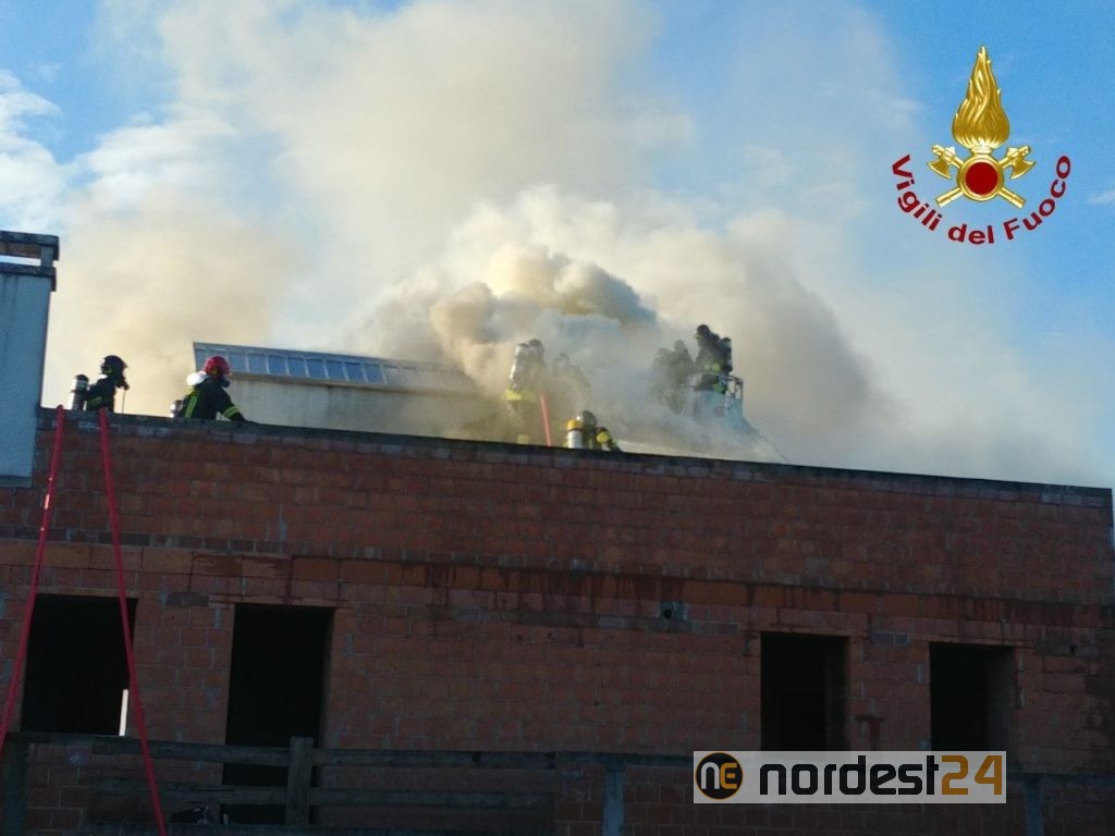 Al momento sono in corso le operazioni sulla copertura con tetto ventilato che sta rendendo difficoltoso lo spegnimento.