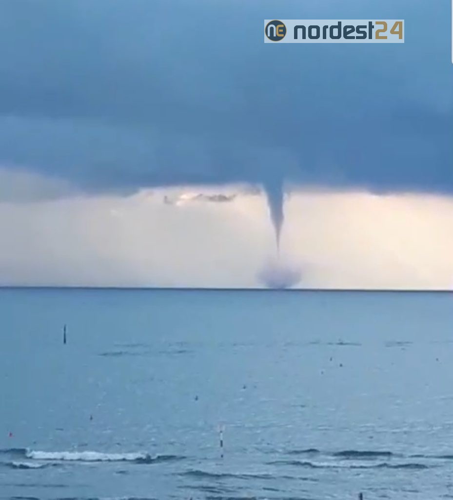 I fenomeni di maggior rilievo stamane li ritroviamo al nord-est. In Friuli Venezia Giulia l’aria più fresca e fortemente instabile a contatto con la calda superficie marina ha dato vita ad alcuni vortici: una tromba marina particolarmente grande ha interessato attorno alle 8 del mattino la zona di Lignano Sabbiadoro in provincia di Udine.
