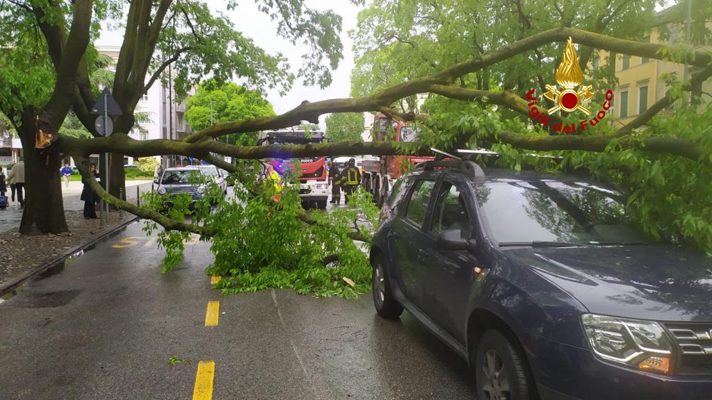 Nel pomeriggio di venerdì, alle 15:45, i vigili del fuoco sono intervenuti in Piazza Mazzini a Padova per un grosso ramo staccatosi da un albero secolare e finito sopra un’auto in transito: fortunatamente solo spavento per il conducente venuto fuori illeso.
