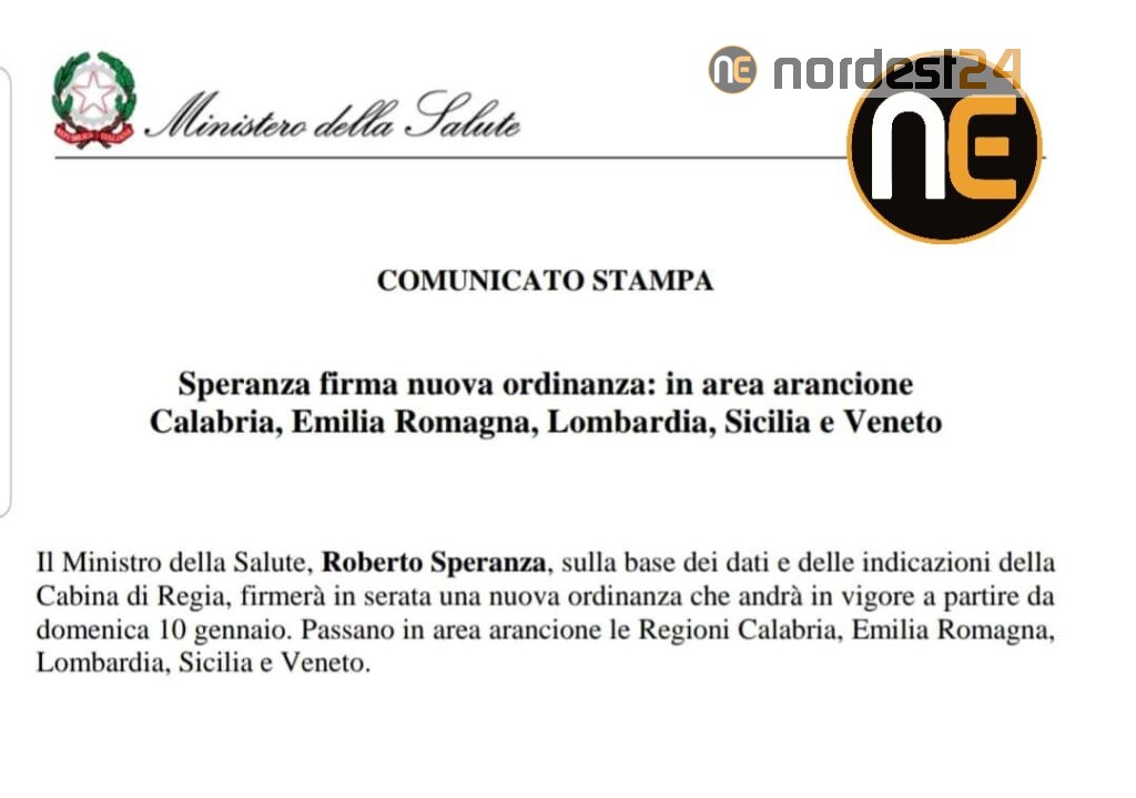 Calabria, Emilia Romagna, Lombardia, Sicilia e Veneto (queste ultime due lo hanno espressamente richiesto) tornano in zona arancione.