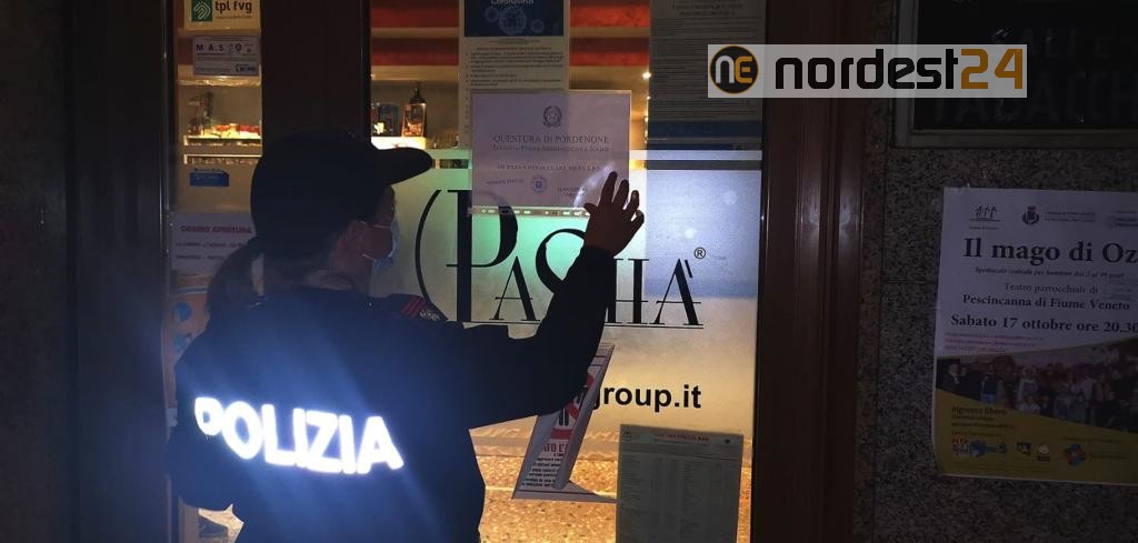 Nella serata di ieri, venerdì 16 ottobre, personale dell’Ufficio Polizia Amministrativa e di Sicurezza della Questura di Pordenone, unitamente ai colleghi dell’Ufficio Prevenzione Generale e Soccorso Pubblico – Squadra Volante, hanno eseguito il provvedimento di sospensione per 30 giorni, disposto dal Questore della Provincia di Pordenone Marco Odorisio, nei confronti del “Bar PASCHA’”, ubicato nella frazione Pescincanna di Fiume Veneto (PN).