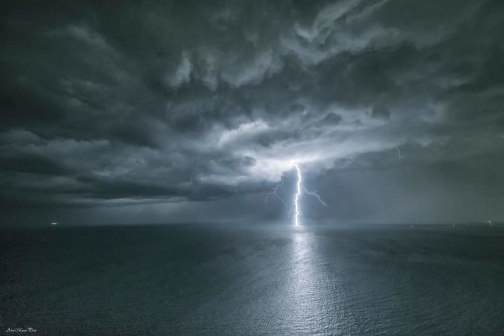 Foto molto suggestive che registrano anche l'entità dei fulmini scesi sulle località balneari.