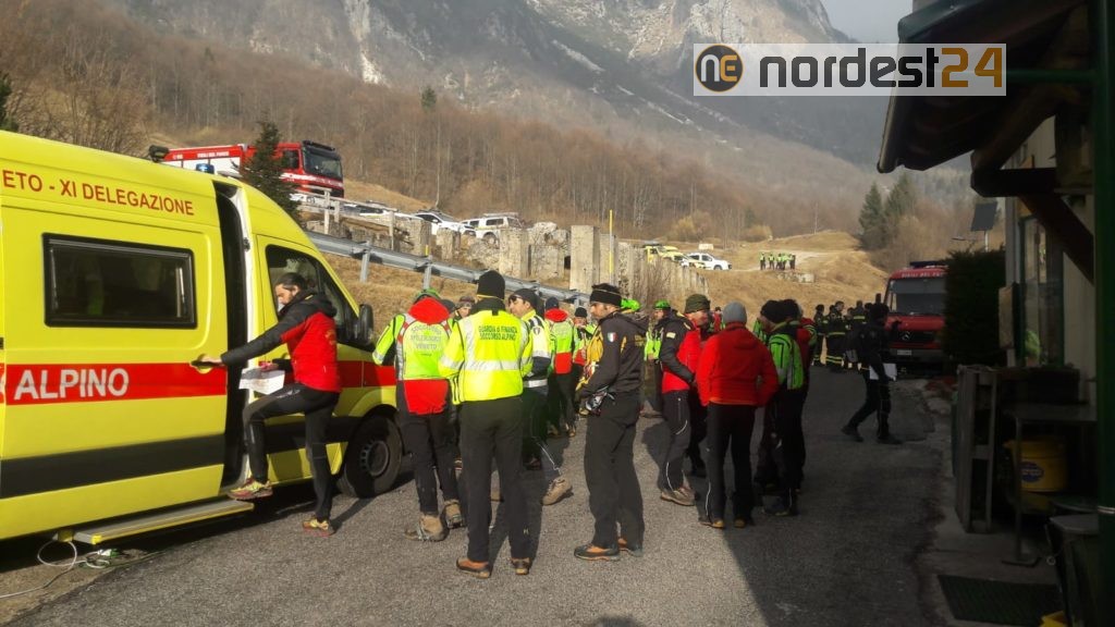 Il Soccorso alpino trentino ha controllato il proprio versante, non potendo impegnare però l'elicottero per assenza di visibilità. Domattina riprenderà la ricerca e verranno completate, tra le altre, le zone oggi coperte dalle nubi. Erano presenti il Soccorso alpino di Schio, Padova, Verona, Arsiero, Recoaro - Valdagno e Soccorso alpino trentino e dell'Alto Adige, la VI Delegazione speleologica, il Sagf di Auronzo, Cortina e Passo Rolle con un'unità cinofila, la Protezione civile di Pasubio e Alto Vicentino con due unità cinofile, i Vigili del fuoco con i sommozzatori che hanno ispezionato degli specchi d'acqua nelle vicinanze di Malga Prà.