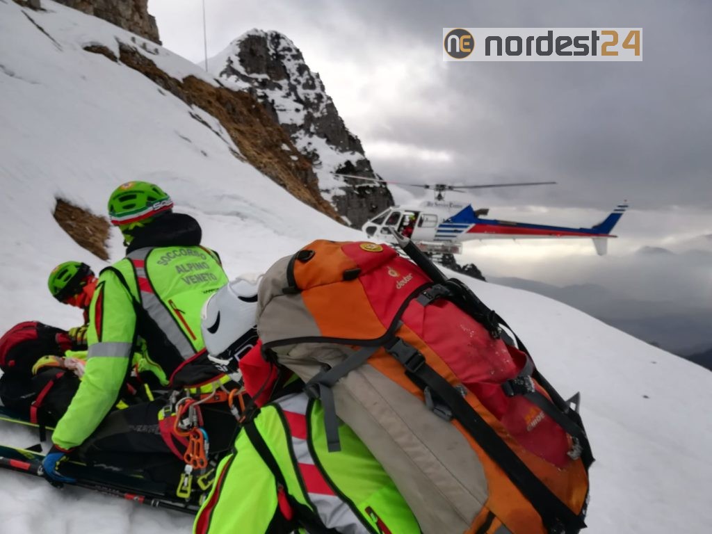 L'elicottero dell'Air Service Center, convenzionato per la Protezione civile con il Soccorso alpino e speleologico Veneto, ha trasportato al Rifugio Papa alcuni soccorritori con gli sci d'alpinismo dirette a Passo Sette Croci, Roite, Rifugio Lancia, altri nella zona dei Denti, Incudine e Strada delle Creste e poi Passo degli alberghetti e Val Sorapache.