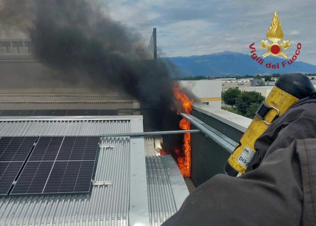 In fiamme l'impianto fotovoltaico di un'azienda metalmeccanica: i pompieri limitano i danni