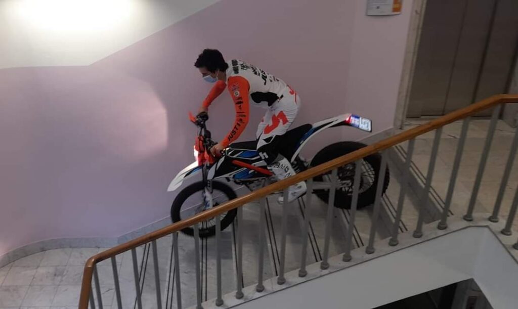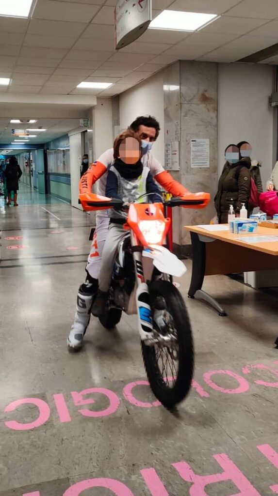 Vanni Oddera e i suoi collaboratori Alberto e Matteo hanno portato oggi 17 gennaio 2023 il motocross nei corridoi dell'ospedale Burlo di Trieste.