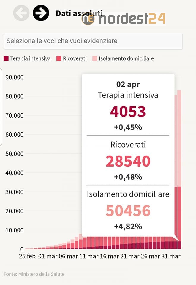 I pazienti in area non critica sono 1.719 (+49). I malati in terapia intensiva sono 335 (-10).