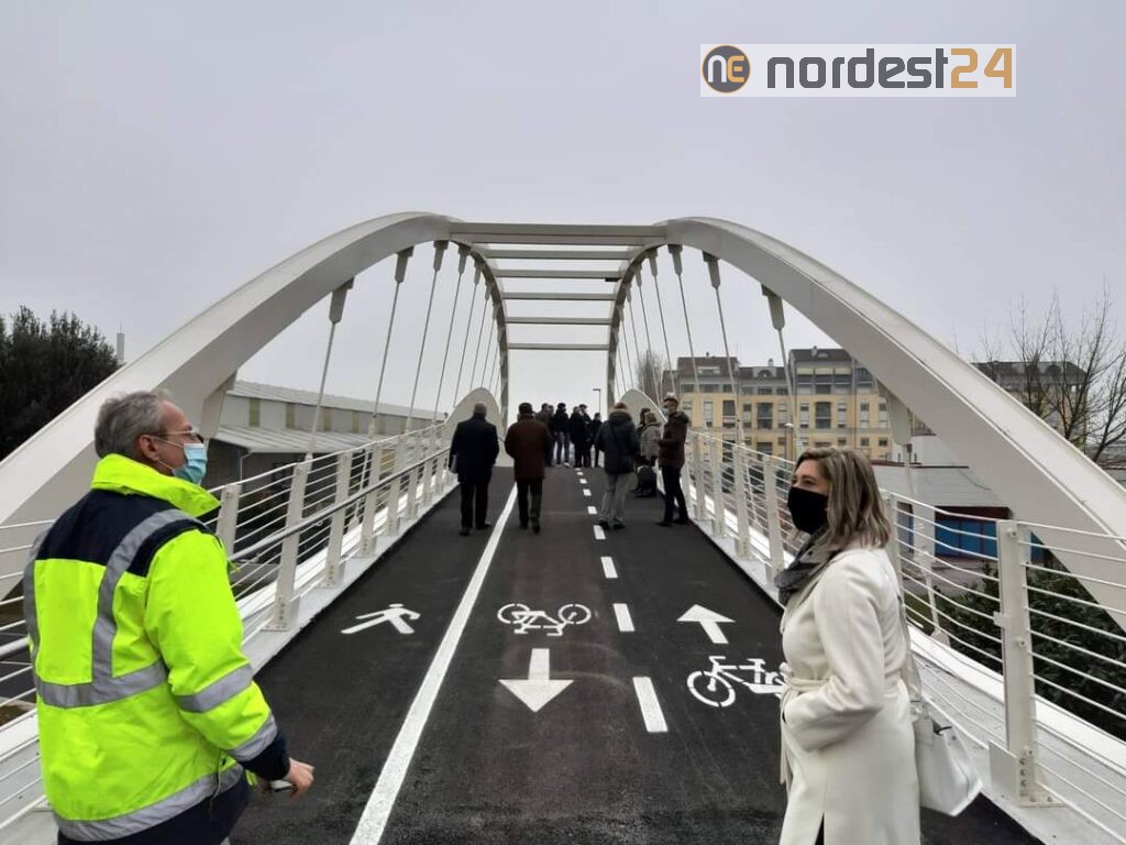 Questo pomeriggio è stata inaugurata la passerella ciclopedonale sulla SS 13 a Pordenone che collega i quartieri San Valentino e Torre all’altezza dei plessi scolastici.