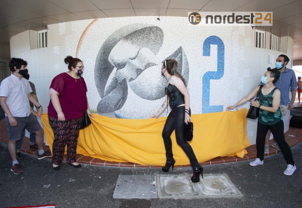 LIGNANO PINETA – Una conchiglia, una perla. Una forma in movimento. “Viva” proprio come il titolo (Forma viva) del simposio di scultura durante il quale è stata realizzata. Da oggi, sabato 25 luglio, è anche il mosaico che abbellisce l’ingresso del bagno 2 – bandiera tedesca di Pineta, inaugurato questa mattina alle 11 e realizzato dagli specializzandi della storica Scuola di Mosaico di Spilimbergo.
