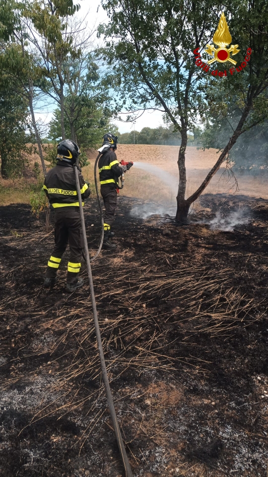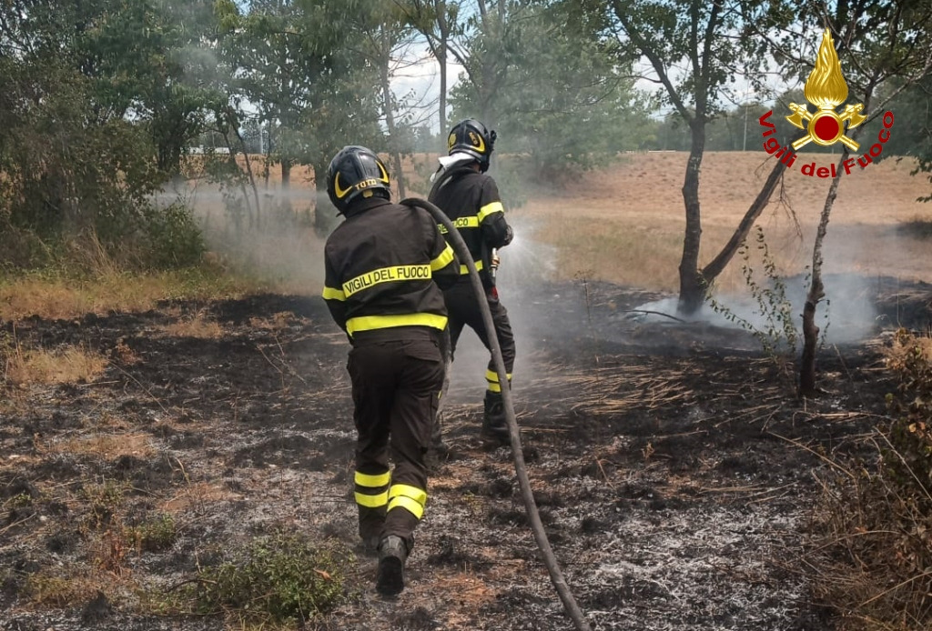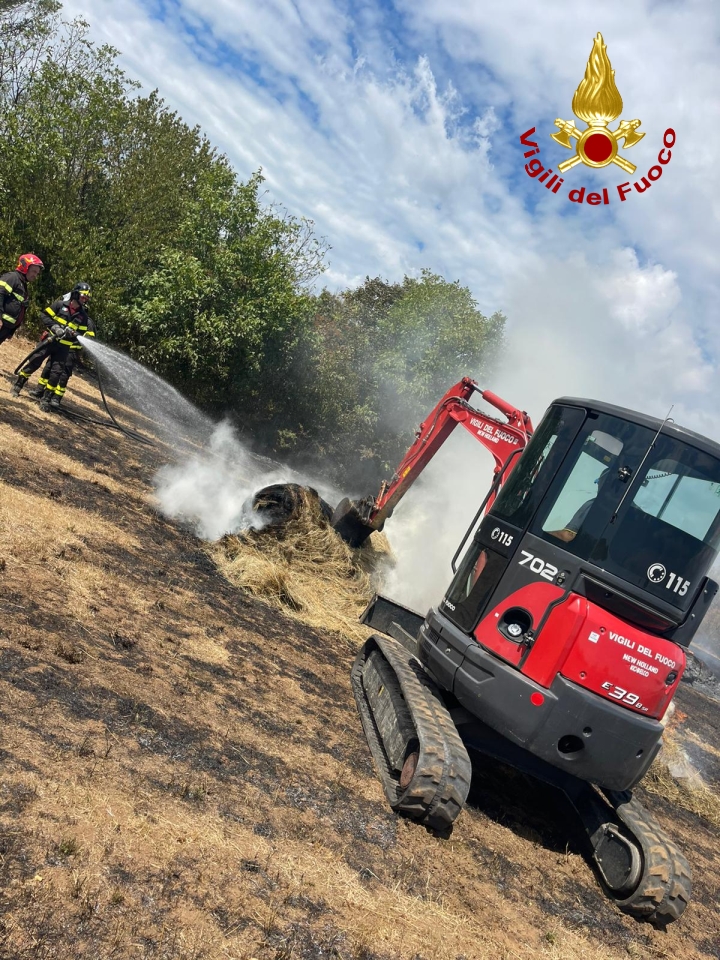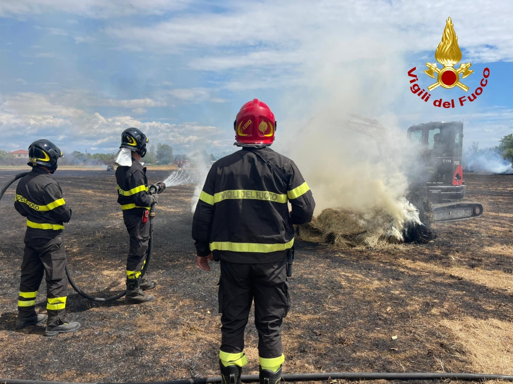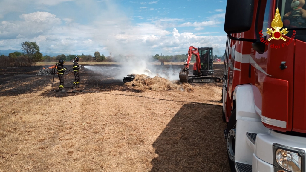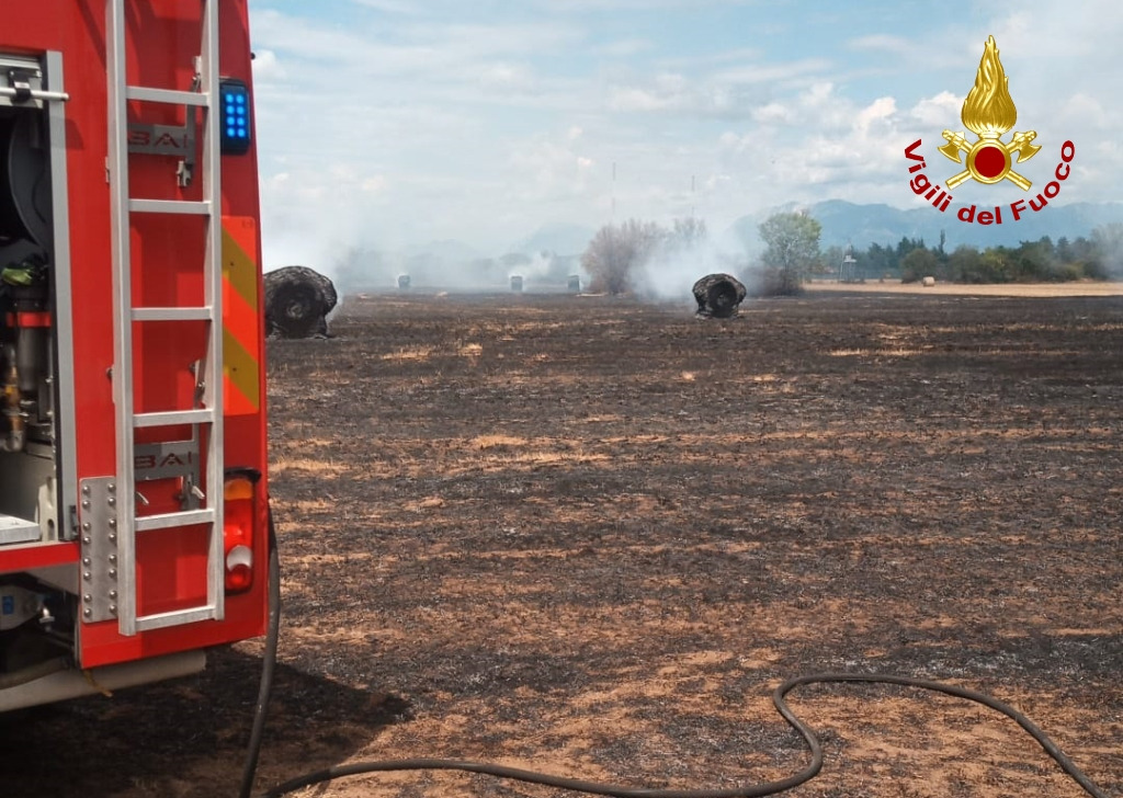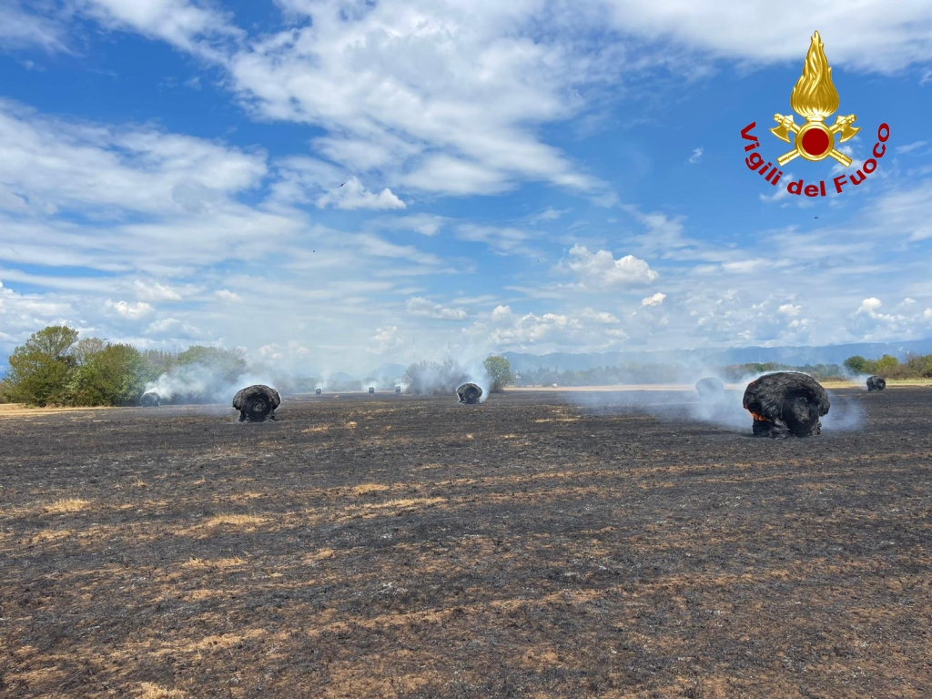 Il rapido intervento dei Vigili del fuoco è valso a circoscrivere l’incendio ad un’area di circa due ettari di un campo con alcune balle di fieno evitando la propagazione delle fiamme ad una zona boscata che si trova nelle immediate vicinanze.
