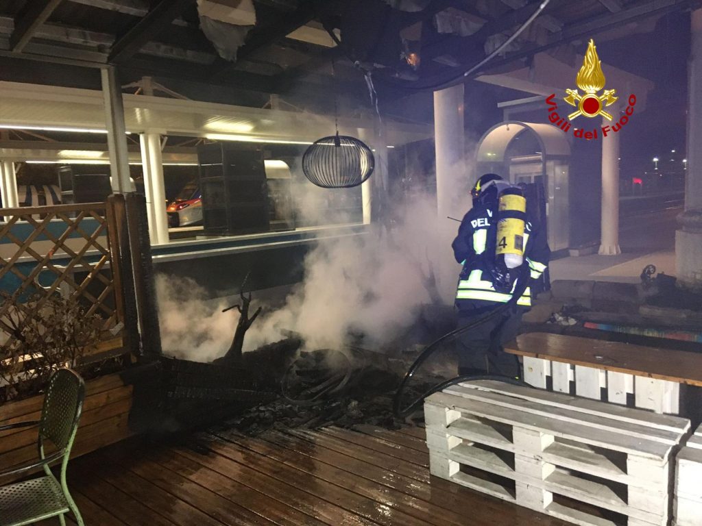 I pompieri accorsi dal locale distaccamento, hanno spento le fiamme, che hanno danneggiato parte dell'arredo del plateatico e deformato la copertura della pensilina in ondulina.