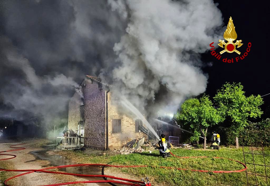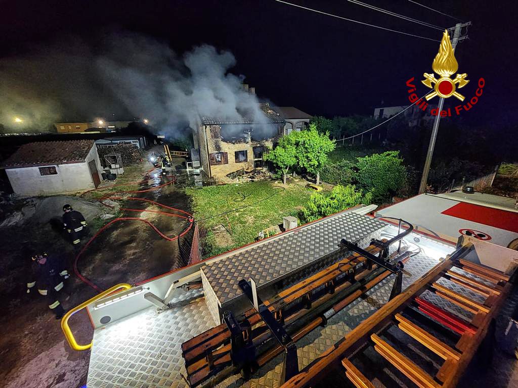 Incendio a Casalserugo (PD), vecchia casa adibita a ricovero mezzi agricoli distrutta dalle fiamme