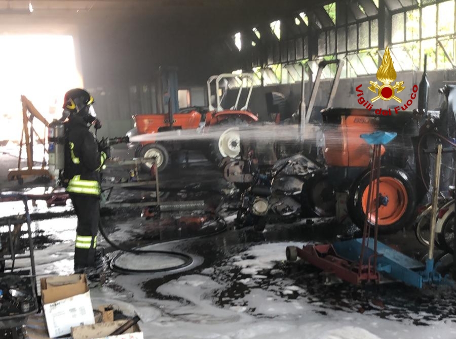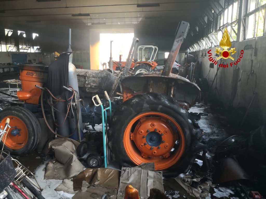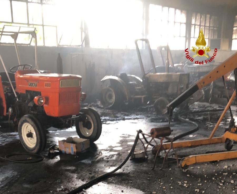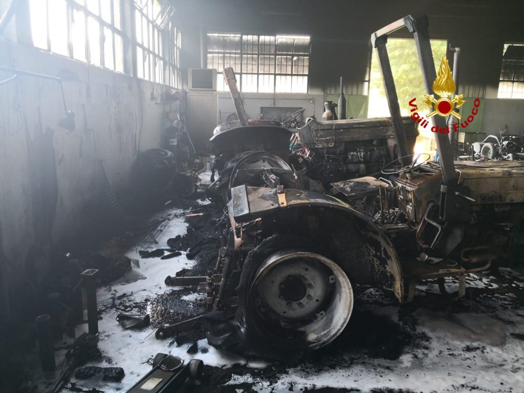Incendio a Cona in officina meccanica, distrutti i trattori