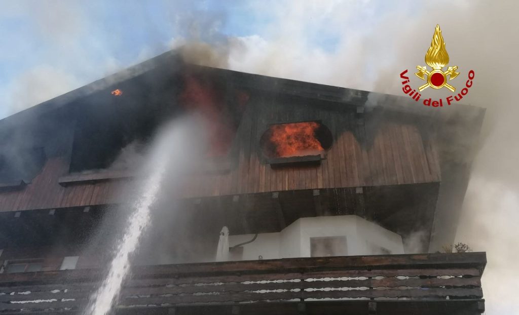 Incendio a Cortina d’Ampezzo: brucia una tipica abitazione di montagna