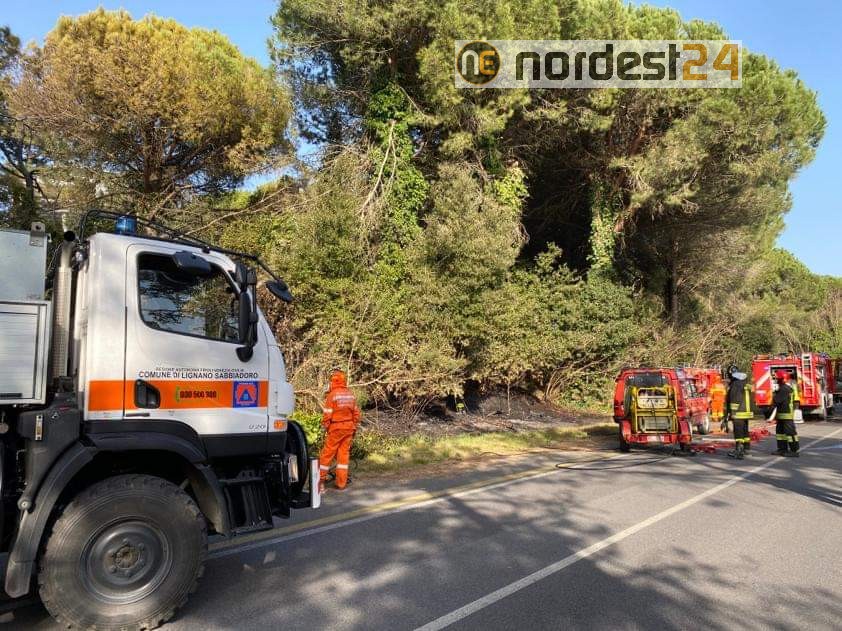 Incendio a Lignano: a fuoco una zona boschiva a Riviera