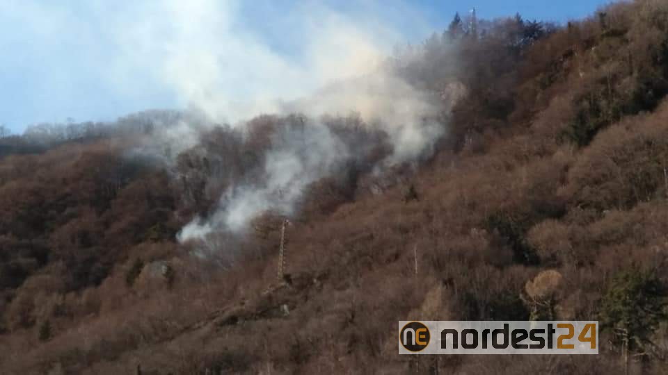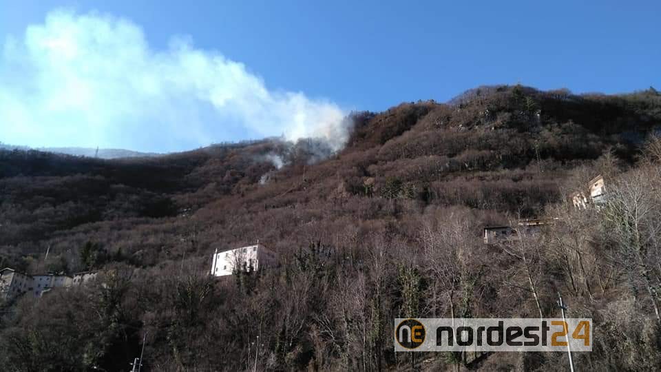 LONGARONE (BL). Incendio boschivo dalle 14:30 di oggi lunedì 20 gennaio 2020 in provincia di Belluno vicino alla località di Podenzoi.