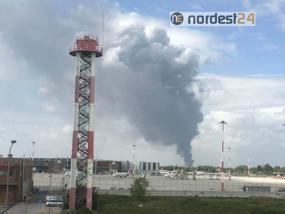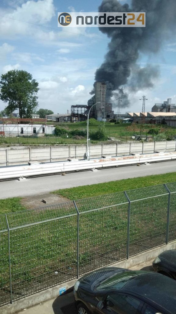 Un’altissima colonna di fumo visibile a chilometri di distanza si è alzata stamane da Marghera.