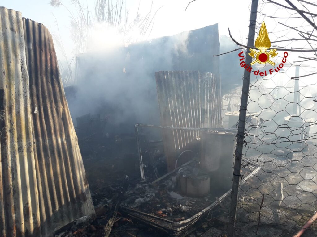 Le squadre hanno estinto le baracche e sterpaglia circostante, evitando l’estensione del rogo alla vicina abitazione.
