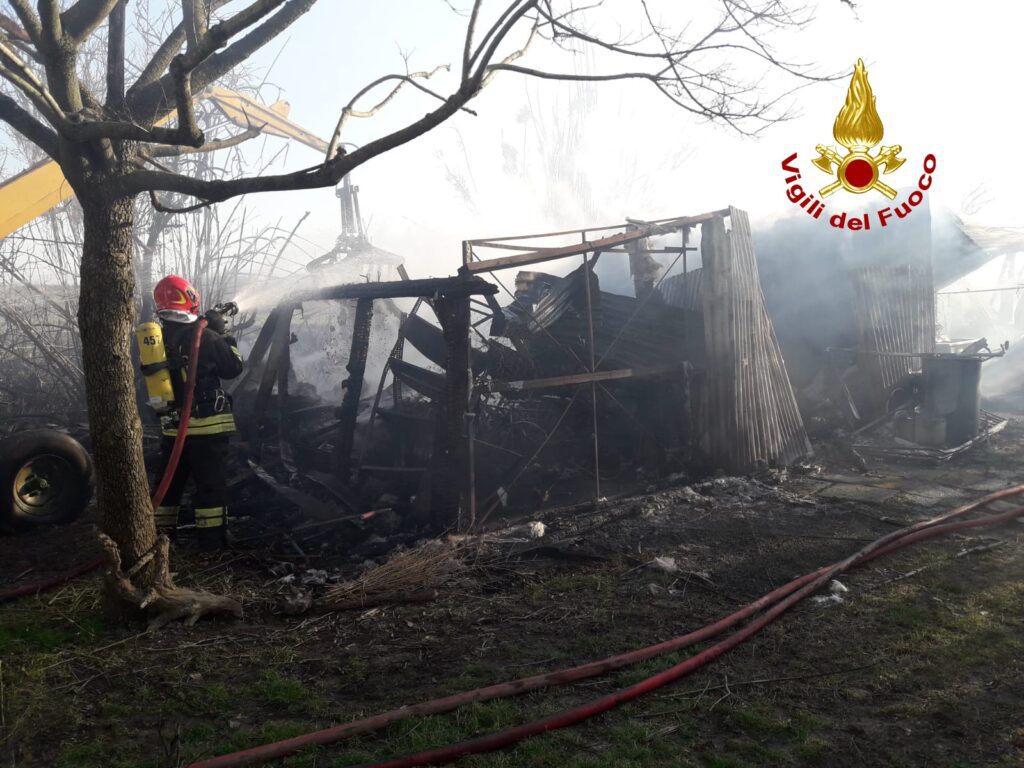 Incendio a San Donà di Piave, distrutte diverse baracche adibite al ricovero di mezzi agricoli