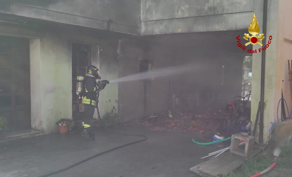 TEGLIO VENETO (VE). Dalle 11.40, di lunedì, i vigili del fuoco sono impegnati in via Vittorio Emanuele a Teglio Veneto per l’incendio di un garage adibito a deposito con all’interno delle bombole.