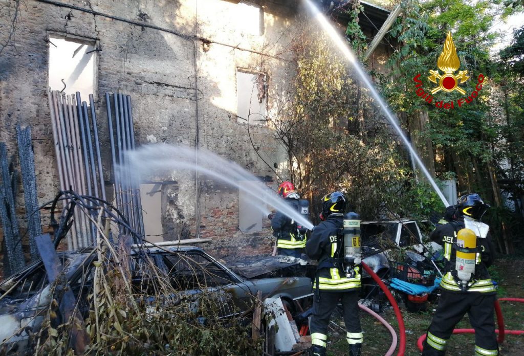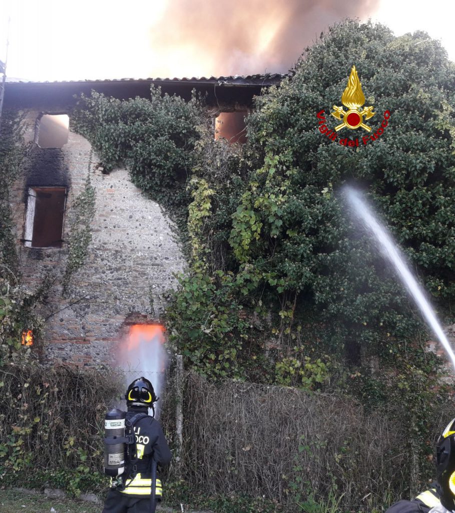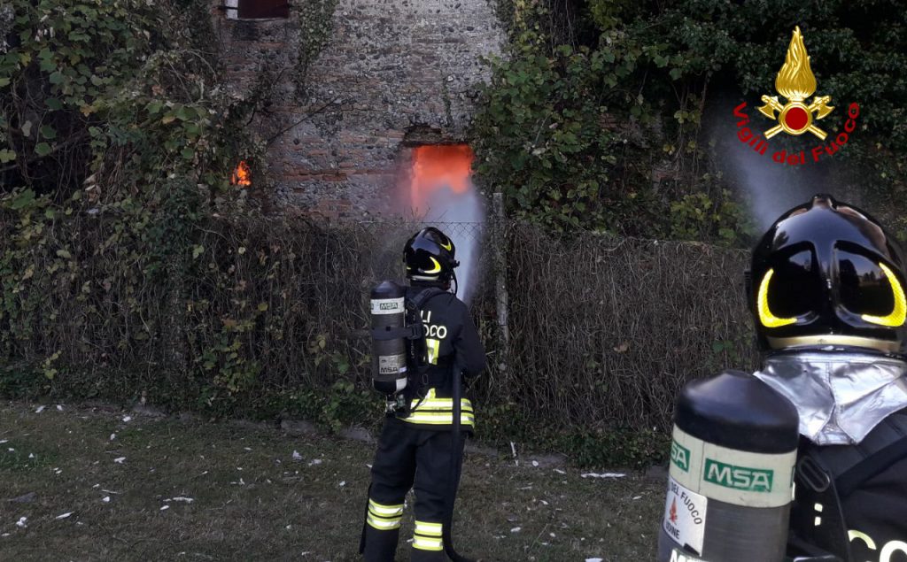 Incendio a Villanova della Cartera di San Michele al Tagliamento: pompieri al lavoro
