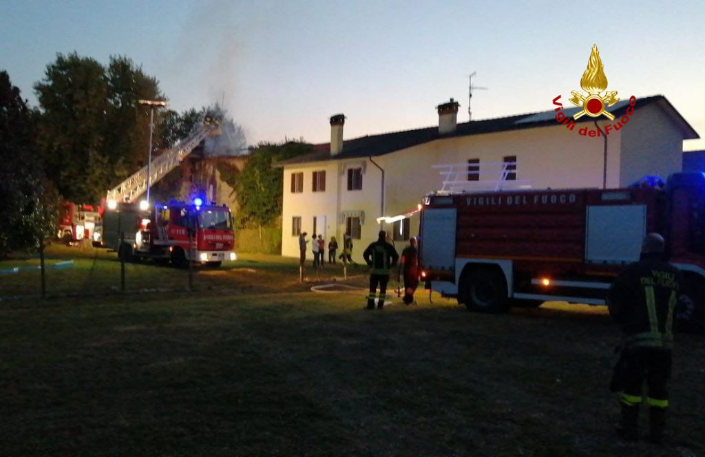 Dalle 17:30 di lunedì i vigili del fuoco stanno operando in Via Santa Lucia a Villanova della Cartera frazione del comune di San Michele al Tagliamento per l’incendio che ha interessato una di quattro case a schiera al momento disabitata: nessuna persona è rimasta ferita.