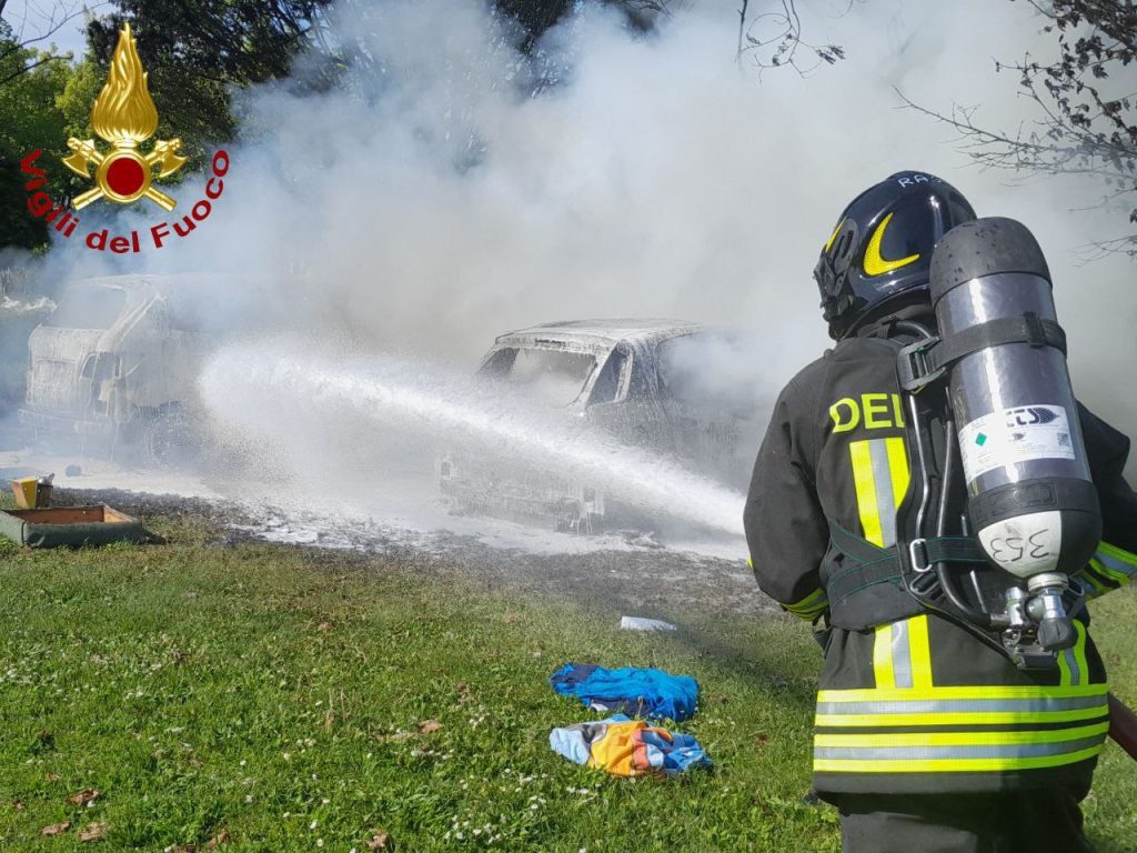 Nel pomeriggio la prima partenza dei Vigili Del Fuoco di Pordenone supportati dall'autobotte sono intervenuti per un incendio che ha coinvolto due autovetture e parte del prato eboso sottostante in via Piz Lungo, a Tiezzo di Azzano Decimo. I vigili del fuoco hanno spento le fiamme e messo in sicurezza i veicoli che sono andati purtroppo completamente distrutti.
