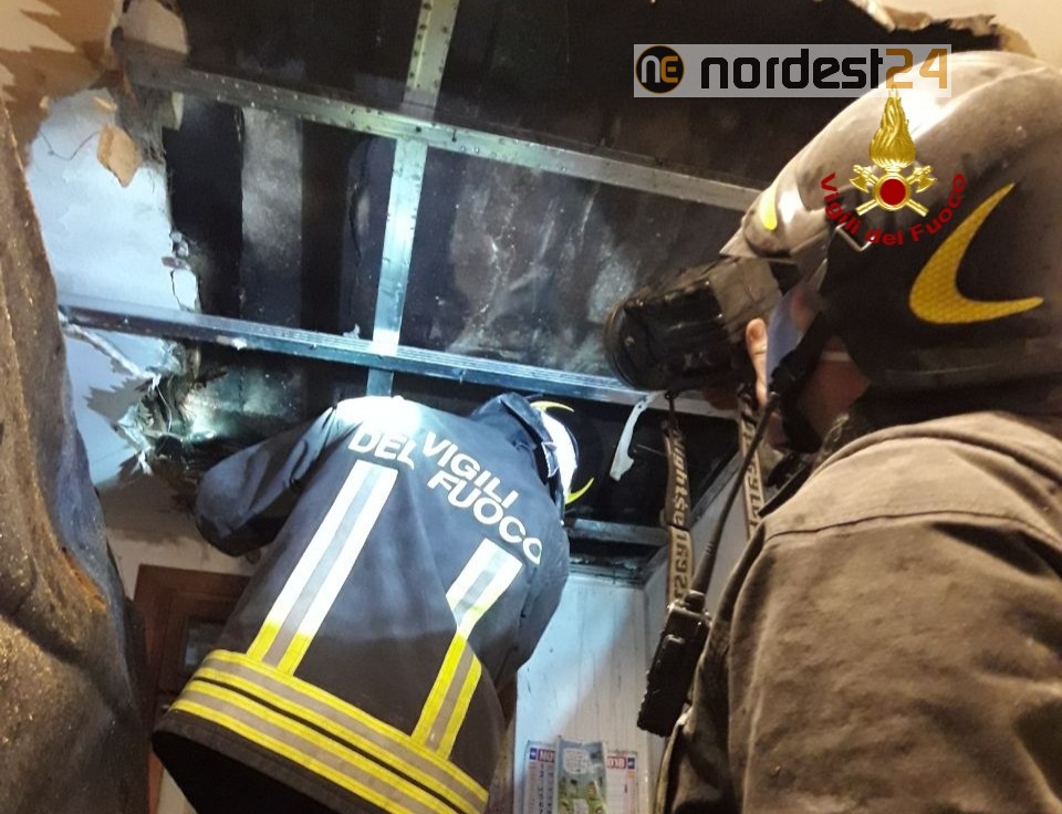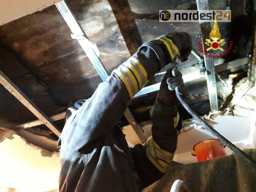 I pompieri arrivati da Bassano del Grappa e da Vicenza con l’autoscala, hanno dovuto rompere il contro soffitto in cartongesso dell’abitazione per poter spegnere le travi in legno interessate dalla combustione.