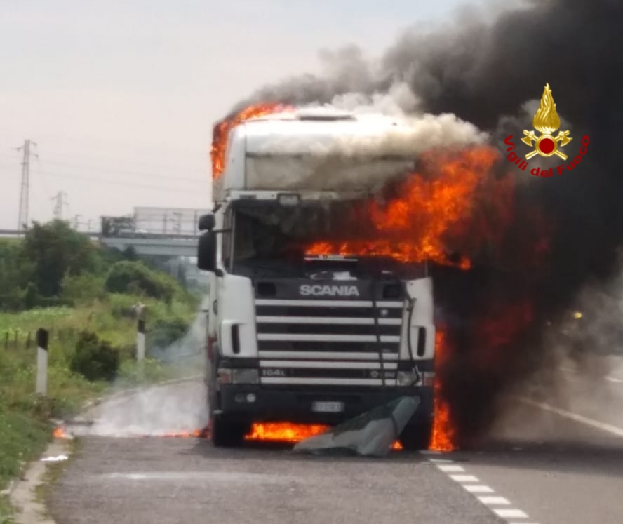 Alle 10.45, i vigili del fuoco sono intervenuti lungo l’autostrada A4 tra il casello di Grisignano e lo svincolo dell’A 31 per l’incendio di un autoarticolato, che trasportava una lastra di metallo.