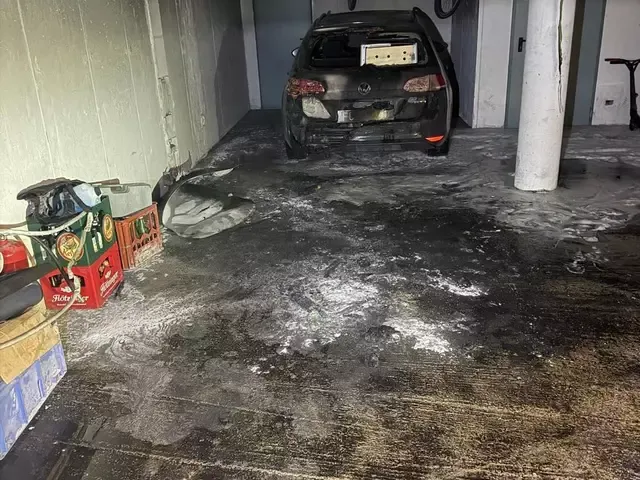 Auto elettrica a fuoco in un garage: danni anche a un'altra vettura, quattro persone intossicate