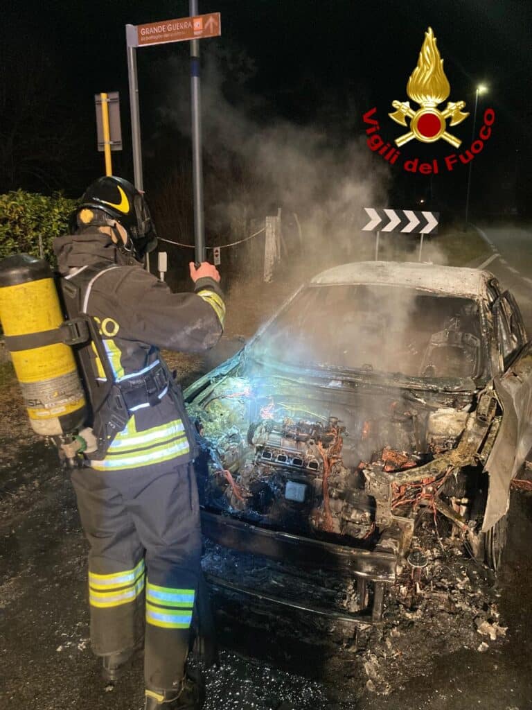 NERVESA DELLA BATTAGLIA (TREVISO) - Alle 4:10, di sabato 18 gennaio, i vigili del fuoco sono intervenuti in via Ottava Armata nel comune di Nervesa della Battaglia per l’incendio di un’auto ibrida.