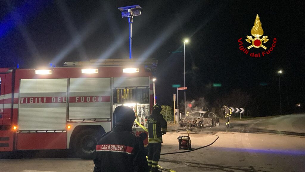 L’autista si è accorto che qualcosa non andava, si è fermato ed è sceso con le altre persone, mentre l’auto ha preso fuoco.