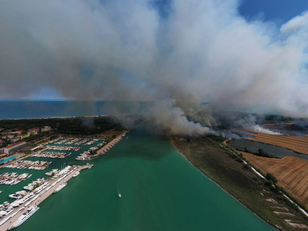 Bibione. Otto turisti tentano di sfuggire alle fiamme al fumo lanciandosi nel fiume Tagliamento: soccorsi