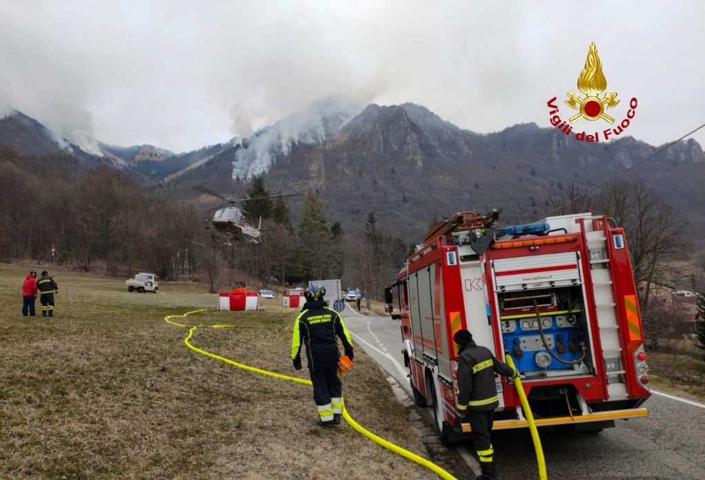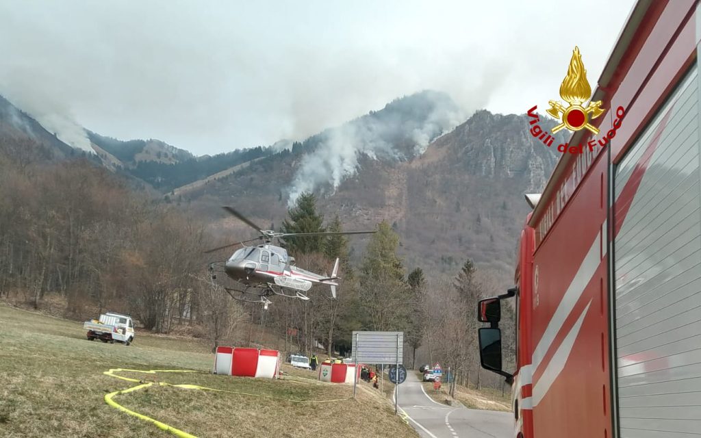 Questa mattina sono iniziate le operazioni di spegnimento con la presenza dell’elicottero regionale che pesca nei vasconi riforniti dalle autobotti dei vigili del fuoco presenti sul posto con il personale di Schio, Vicenza e i volontari di Thiene, in località Bosco dei Tretti e Busa Novegno.
