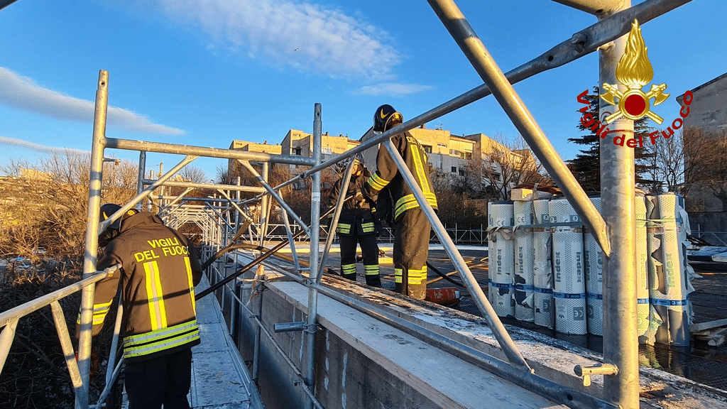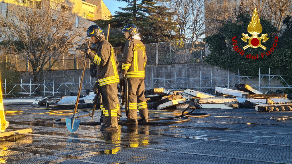 L'incendio nel cantiere della scuola