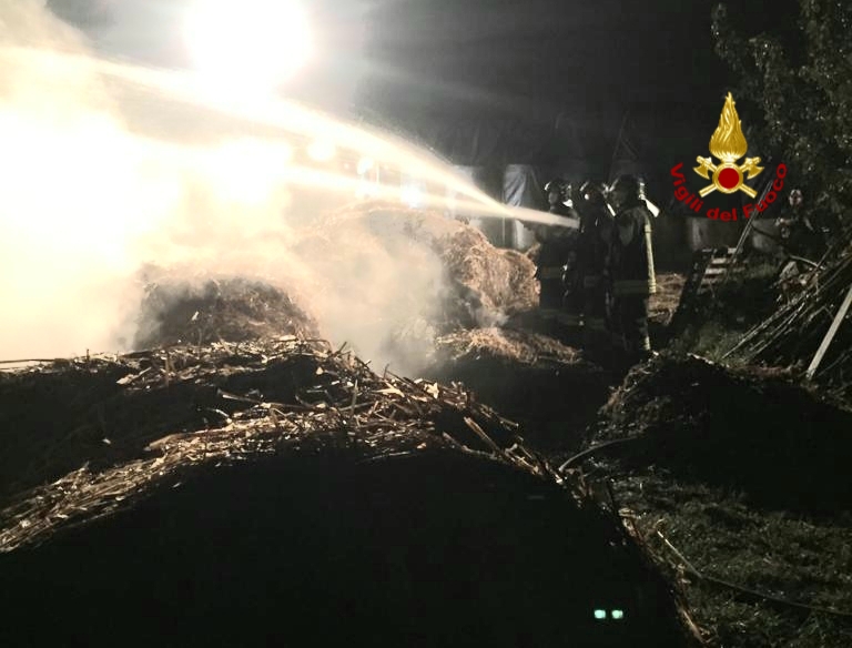 Dalle 1, della notte scorsa, i vigili del fuoco sono impegnati in via Sperona a Casalserugo in provincia di Padova per incendio divampato in un deposito di fieno di un'azienda agricola.